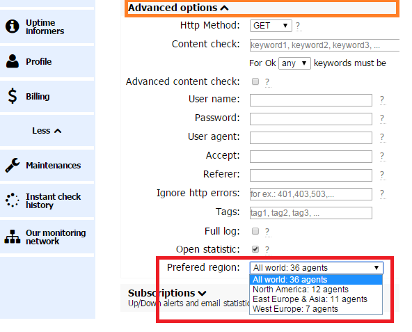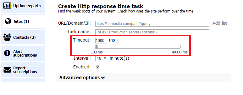 POZNÁMKA! Doba odezvy závisí na vzdálenosti mezi datovým centrem vašeho webu a naším kontrolním serverem. Pro vzdálenou zemi by mohl být dostatečně velký. Chcete-li tento efekt snížit, vyberte zaškrtávací oblast v rozšířených možnostech.